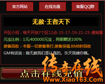传奇在线 www.xiao163.com 版权所有 2008-2020 保留所有权利 打击盗版支持正版游戏 任何组织或个人未经同意 不得使用和传播盗版游戏 本站内容均自动采集互联网