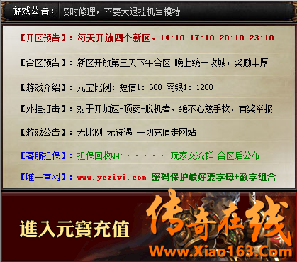 传奇在线 www.xiao163.com 版权所有 2008-2020 保留所有权利 打击盗版支持正版游戏 任何组织或个人未经同意 不得使用和传播盗版游戏 本站内容均自动采集互联网