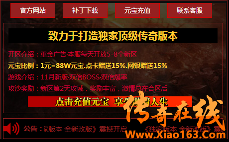 传奇在线 www.xiao163.com 版权所有 2008-2020 保留所有权利 打击盗版支持正版游戏 任何组织或个人未经同意 不得使用和传播盗版游戏 本站内容均自动采集互联网