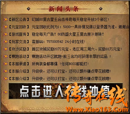 传奇在线 www.xiao163.com 版权所有 2008-2020 保留所有权利 打击盗版支持正版游戏 任何组织或个人未经同意 不得使用和传播盗版游戏 本站内容均自动采集互联网