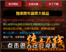 传奇在线 www.xiao163.com 版权所有 2008-2020 保留所有权利 打击盗版支持正版游戏 任何组织或个人未经同意 不得使用和传播盗版游戏 本站内容均自动采集互联网